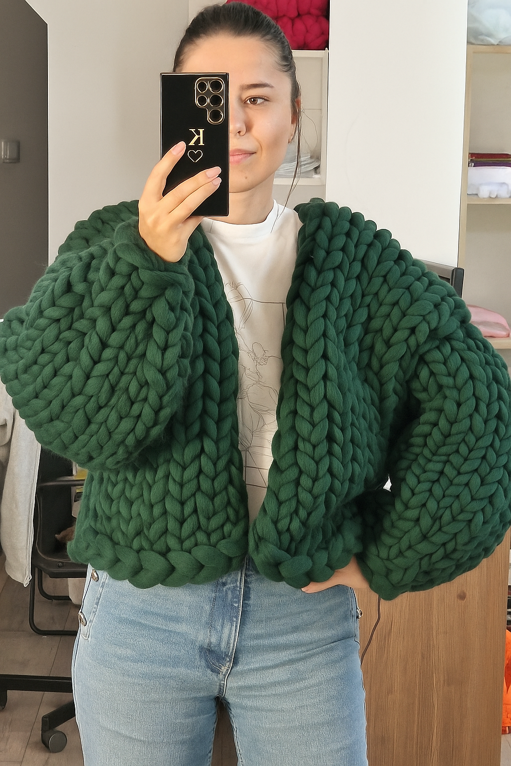 Cardiganul din imagini se potrivește mărimilor M - L, în funcție de fitul dorit.