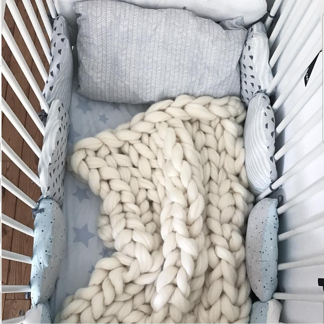 Pătura este împletită manual din lână naturală de merinos. Lâna de merinos este hipoalergenică, pufoasă, moale, călduroasă, sigură pentru copii și prietenoasă cu mediul, fiind biodegradabilă.